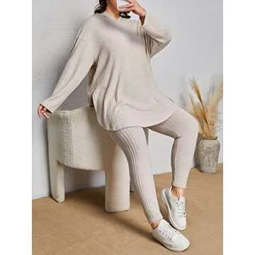 Feature: rib knit, pajama pants and tops set, 2 piece lounge set, two piece set, 2 piece outfit