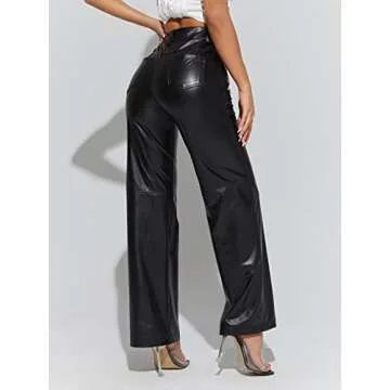 Fall in love with the effortlessly chic vibe and practical design of the MakeMeChic Women's PU High Waist Faux Leather Straight Leg Pants. With their stunning aesthetic, these pants will quickly become a go-to piece in your wardrobe, making you feel confident and stylish wherever you go. The soft faux leather material offers luxurious comfort, while the high waist and straight leg ensure a flattering fit that enhances your confidence. Step out in style and make a statement with every wear!