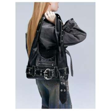 MakeMeChic Women's PU Leather Single Strap Zipper Vintage Medium Shoulder Bag Tote Handbags Black B One Size