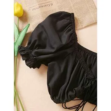 What makes this top stand out is its adjustable tie front, allowing you to customize the fit to suit your body shape perfectly. Many users have raved about its snug embrace and how it enhances their silhouette. The ruched puff sleeves provide a trendy touch, while the cropped length ensures that you can pair it with high-waisted jeans or skirts, giving you a variety of fashionable outfit options. Designed to flatter all body types, this top has garnered praise for making wearers feel confident and stylish, no matter their bust size.