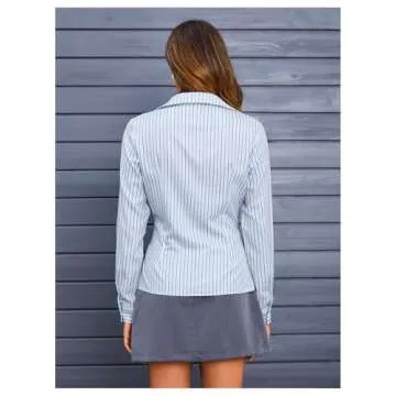 Introducing the MakeMeChic Women’s Striped Button Down Shirt, a staple for anyone looking to elevate their wardrobe. Designed with a stylish collared neck and long sleeves, this Y2K-inspired blouse adds a touch of vintage flair to your outfits. Made from breathable and skin-friendly fabric, it's perfect for all-day wear, whether you’re headed to the office or a casual outing. The striking blue stripes not only create a bold statement but also pair effortlessly with a variety of bottoms,...