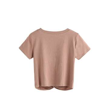 MakeMeChic Women's Summer Crop Top Solid Short Sleeve Twist Front Tee T-Shirt Khaki S