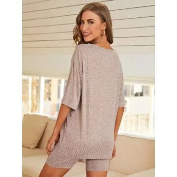 MakeMeChic Women's Summer Lounge Sets 2 Piece Ribbed Short Sleeve Top and Biker Shorts Set Tracksuits Khaki S