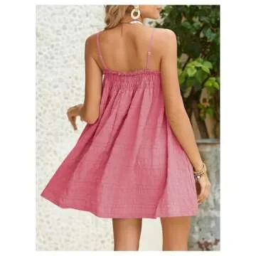 Show more Introducing the MakeMeChic Women's Summer Mini Dress, a delightful blend of style and comfort that's perfect for your summer wardrobe! This stunning dress features a charming pink hue, designed with a flattering flared hem and a trendy ruched trim that accentuates your silhouette beautifully. The spaghetti straps and sleeveless design provide just the right amount of breathability, making it an ideal choice for warm, sunny days. Crafted from high-quality fabric with no stretch, this swing mini dress ensures a confident fit that highlights your figure, making you feel delightful whether you're on the beach or enjoying a casual outing with friends.