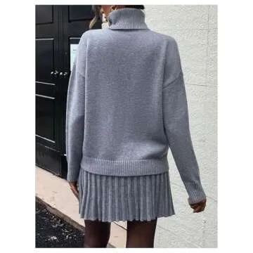 MakeMeChic Women's Sweater Skirt Sets 2 Piece Outfits Ribbed Knit Mock Neck Sweater Pullovers A Line Mini Skirt Set B-Grey Small