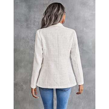 Why You Will Love This Product? The MakeMeChic Women's Tweed Blazer isn’t just about looks—it’s about feeling confident and empowered. This blazer transforms any outfit, making you feel effortlessly chic whether you are at a meeting or enjoying a leisurely brunch. Its soft fabric makes it comfortable enough for all-day wear, while its timeless design ensures that you'll reach for it time and again. Add this blazer to your collection and embrace the elegance it brings to your everyday life.