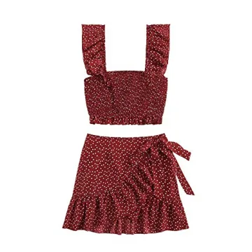 Show moreIntroducing the MakeMeChic Women's Two Piece Ruffle Trim Cami Crop Top And Wrap Skirt Set, a delightful ensemble that embodies the spirit of summer fashion! Crafted from 100% Polyester, this stylish two-piece set combines comfort and chic aesthetics, making it ideal for everything from beach outings to evening soirées. The top features an elastic cami design that provides a cozy fit, while the wrap skirt, adorned with a charming ruffle hem and an enticing polka dot pattern, delivers a playful yet sophisticated vibe.