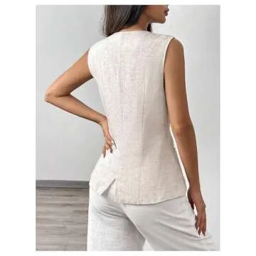 Show more This stunning sleeveless vest blazer is not just a piece of clothing; it’s an essential addition to every woman's wardrobe. Crafted from a high-quality fabric that features a medium stretch, it guarantees both comfort and style. The crew neck and button-down design give it a polished appearance, making it suitable for both formal and casual outings. With its slit hem and tailored fit, this vest is designed to enhance your silhouette while ensuring ease of movement.