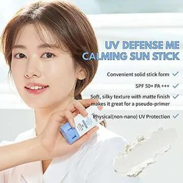 MAKEPREM UVA UVB Defense Me Calming Sun Stick Sunblock SPF 50+ PA++++ 0.7 Oz VEGAN Sensitive Oily Acne-Prone Skin Reef-Safe Mineral Sunscreen Non-Nano No Chemical UV Protection Non-Greasy Sticky Kids