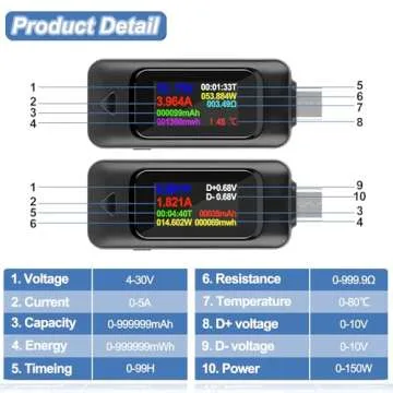 ... Show more Introducing the ultimate USB Type-C Power Meter Tester by MakerHawk, an innovative solution designed for tech enthusiasts and professionals alike. This remarkable device is crafted with high-quality materials including aluminum alloy joints that effectively prevent oxidation and rust, ensuring durability and longevity. With its robust interface and precise construction, the USB tester is designed for repeated use, making it a reliable companion for all your electronic devices.