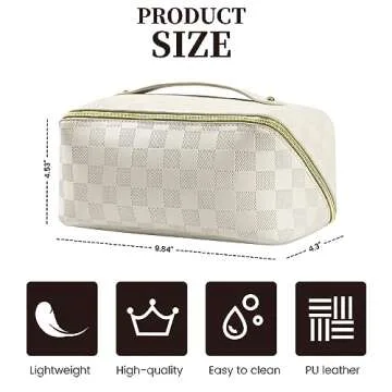 Show moreIntroducing the **Makeup Bag - Large Capacity Travel Cosmetic Bag for Women**, your ultimate solution for organizing cosmetics and toiletries with ease! Crafted from **high-quality PU leather**, this bag not only boasts a fashionable design but is also **waterproof**, ensuring your beauty products remain safe and dry. The **durable zipper** glides smoothly and securely closes your essentials, while the lightweight structure makes it a breeze to carry around. Perfect for busy women on-the-go, this bag is more than just a storage solution. It's an essential companion for travel enthusiasts, makeup lovers, and anyone who values style and functionality.