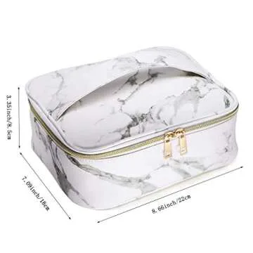 Makeup Bag Organizer Travel Marble Cosmetic Case Portable Large Toiletry Bag with Brush Holder PU Gold Zipper Pencil Storage Case for Women,White