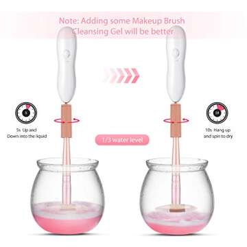 Show more If you are looking for a revolutionary way to simplify your beauty routine, look no further than this incredible makeup brush cleaner! This state-of-the-art device not only cleans your brushes in record time, but it also dries them quickly, so you can get back to looking fabulous without delay. Designed to bring convenience to your life, the brush cleaner features a unique spin-dry technology that takes the mess and hassle out of cleaning. Imagine transforming a tedious 45-minute chore into a mere 10-minute task!