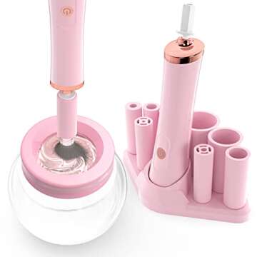 Makeup Brush Cleaner Dryer, Neeyer Super-Fast Electric Brush Cleaner Machine Automatic Brush Cleaner Spinner Pink color…