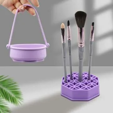 Makeup Brush Cleaning Mat - Portable Silicone Makeup Brush Cleaner Bowl with Drying Holder (Purple)