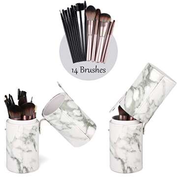 Show moreDiscover the ultimate solution for organizing and protecting your precious makeup brushes with our **Makeup Brush Holder Travel Case**. Crafted from high-quality PU leather in an elegant marble design, this case is not just about beauty but also function. With dimensions of 3.1" x 3.1" x 9" (8 x 8 x 23 cm), it comfortably accommodates around 15 medium to small brushes, ensuring that your essentials are always within reach whether you're at home or on-the-go. This durable case offers a secure snap shut feature, allowing you to travel with confidence, knowing your brushes are safeguarded from damage or dust accumulation.