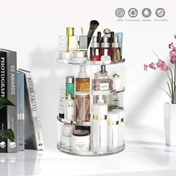 Makeup Organizer 360 Degree Rotating Adjustable Cosmetic Storage Organizer Large Skin Care Cosmetic Display Cases Perfume Jewelry Organizer for Bathroom Dresser Countertop (Clear)