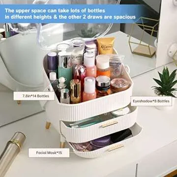Makeup Organizer,Cosmetics Display Case With 2-Layer Storage Box,Waterproof And Dustproof,Skincare Storage Box (White B)