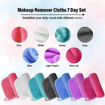 Makeup Remover Cloth, 7 Colors Makeup Towels Face Washcloth, Makeup Remover Pads Reusable Washable, Facial Cloths Clean Towels for Face Eye Skincare, 7.8 * 14 inches, 7 Pack