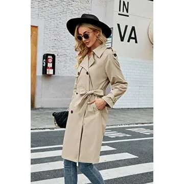 Makkrom Women's Double Breasted Long Trench Coat Windproof Classic Lapel Slim Overcoat with Belt