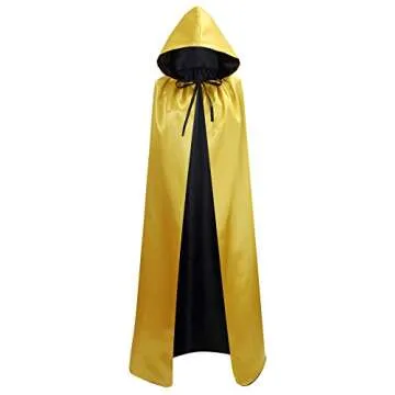 Makroyl Unisex Reversible Hooded Cloak Cape for Christmas Halloween Party Vampires Cosplay Costumes (Black+Yellow, Large)