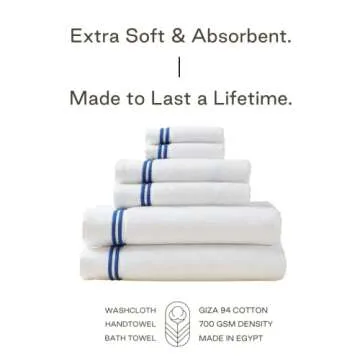 MALEK Luxury Cotton Towel Set - 700 GSM, 100% Cotton, Decorative Bathroom Towel Set, 2 Bath Towels, Hand Towels & Wash Cloths - Highly Durable, Soft & Absorbent - White with Double Blue Stripe