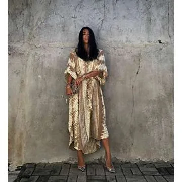 Show moreIntroducing the sensational Maleroads Women Long Tunic Dress Kaftan Maxi Dress, a stylish and versatile addition to your summer wardrobe. Crafted from premium-quality polyester, this dress bridges comfort and chic design beautifully. With a soft, breathable fabric that feels wonderful against the skin, it offers that effortless flow in every movement. Ideal for a day at the beach or lounging at home, this long tunic dress stands at a stunning length of 137cm and features a generous bust circumference of 180cm, accommodating a wide range of body types comfortably. Designed with a flattering 3/4 sleeve and an elegant batwing silhouette, the kaftan is not just a dress—it's an experience that embraces all body shapes, keeping style at the forefront while offering ultimate ease of wear.