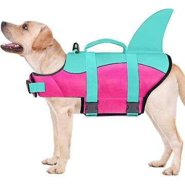 Malier Dog Life Jacket, Ripstop Dog Life Vest with High Buoyancy for Swimming Boating, High Visibility Dog Shark Life Jacket Puppy Life Jacket Dog Lifesaver for Small Medium Large Dogs (Large)