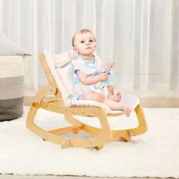 MallBest 3-in-1 Baby Bouncer Adjustable Wooden Rocker Chair Recliner with Removable Cushion and Seat Belt for Infant to Toddler (Beige)