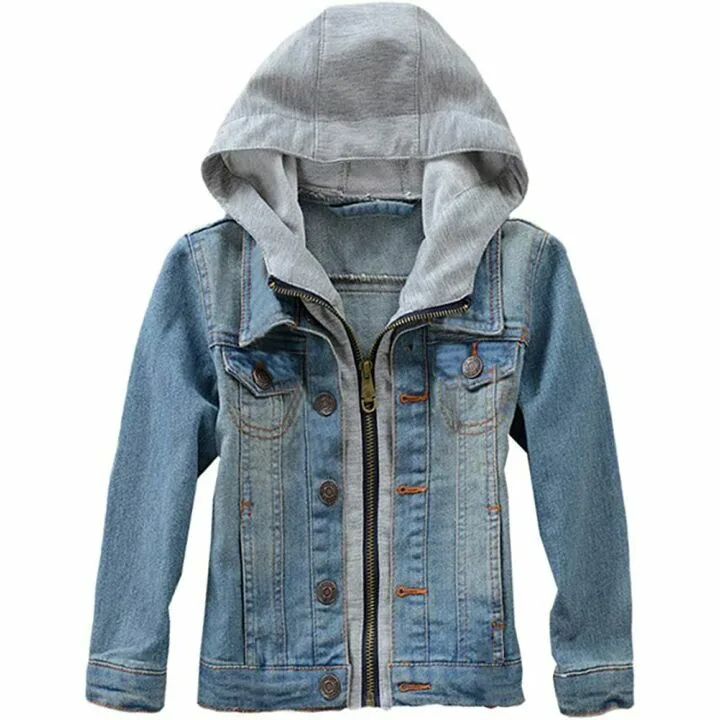 Mallimoda Kids Boys Girls Hooded Denim Jacket - Stylish & Durable Outerwear