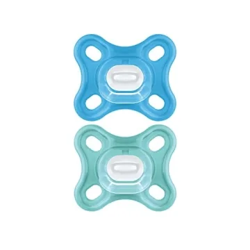 Show moreIntroducing the MAM Comfort Baby Pacifier, the perfect solution for soothing your little one! Designed for babies aged 0-3 months, this set of two pacifiers is crafted from 100% lightweight silicone that is 32% lighter than other brands, making it ideal for breastfed babies. Its symmetrical shape eliminates the hassle of finding the right side, ensuring a perfect fit that allows for easy breathing. The one-piece design guarantees maximum safety, adhering to the recommendations set by the American Academy of Pediatrics. With MAM, you can rest assured that your baby is using a product designed with their comfort and safety in mind.