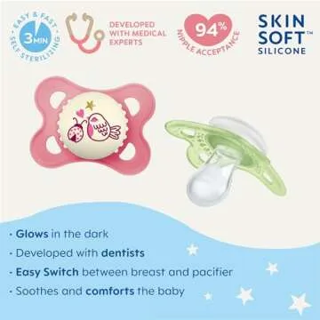 MAM Day & Night Pacifiers, Glow in The Dark Pacifier for Breastfed Babies, 0-6 Months, Baby Girl