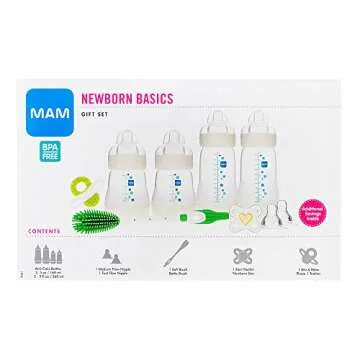 The MAM Newborn Basics Baby Bottle Feeding Gift Set is the ultimate starter kit for new parents, crafted with care to ensure that your little one enjoys a comfortable and safe feeding experience. Made by the reputable brand MAM, this set includes everything you need to make feeding time both efficient and enjoyable for both you and your baby.
