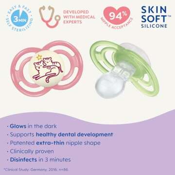 What sets MAM pacifiers apart? The high quality that meets and exceeds US safety standards, which has led to a whopping 94% approval rate among babies. Made from 100% BPA and BPS free orthodontic silicone, these pacifiers are durable, soft, and flexible. They’re not just a product; they’re an essential part of your baby care toolkit, praised by parents everywhere!
