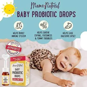 Show moreDiscover the exceptional benefits of Mama Natural Baby Probiotic Drops, a revolutionary solution designed to nurture your little one’s health. Each 0.28 Fl Oz bottle packs in an impressive 4 Billion CFU of pediatrician-approved probiotics, specifically selected to provide unwavering support for your baby’s immune system and digestive wellness. Formulated with a blend of 10 probiotic strains—including renowned strains like L. reuteri, B. bifidum, and B. infantis—these drops promote a balanced microbiome during crucial early development stages. With every drop, you can feel assured of its purity, as it is crafted using simple, clinically studied ingredients that are free from allergens, fillers, and preservatives.