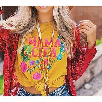 Show moreIntroducing the **Mamacita T-Shirt for Women**, a delightful blend of **style and comfort** that you'll love to wear all summer long. Made from a high-quality **cotton blend**, this shirt not only feels **soft** against your skin but also offers an updated casual look perfect for any occasion. The **adorable flower and cactus graphic** on the front, paired with a fun letter print, adds a whimsical touch that captures the playful spirit of summer vibes. Ideal for everything from **beach outings** to **casual workdays**, this t-shirt is a wardrobe essential for the modern woman.
