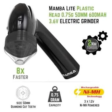 Mamba Lite 0.75g Black All-Plastic Head USB Electric Herb Grinder. Small Portable Herbal Machine & Spice Mill for the Kitchen