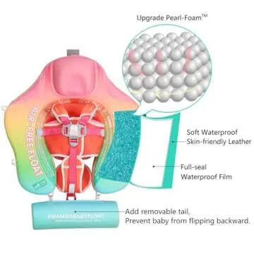 Show moreIntroducing the **2024 Newest Mambobaby Float**, a revolutionary baby swimming float designed to provide a safe and enjoyable water experience for your little ones. The float features a **non-inflatable design**, eliminating the risk of air leakage and ensuring reliable buoyancy in the water. Perfectly tailored for infants aged **3 to 24 months** and supporting weights between **13 to 40 lbs**, this float allows parents to introduce their babies to water activities without concern. The float also boasts a **removable tail** that helps prevent undesired backward flipping, providing reassurance to parents.