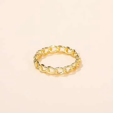 Mameloly 3.8mm 925 Sterling Silver 14K Gold Plated Wedding Bands for Women Stackable Open Chain Link Engagement Rings Size 7