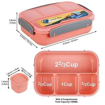 MaMix Bento Lunch Box: 4-Compartment Adult & Kids Lunch Container, 1300ML