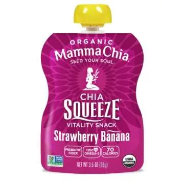 Show moreIndulge in the delicious and nutritious goodness of Mamma Chia Strawberry Banana Organic Squeeze Snacks. These convenient snack pouches pack a delightful burst of flavor using wholesome, organic ingredients. Perfectly crafted for adults and children alike, each 3.5-ounce pouch contains a delightful blend of juicy strawberries and ripe bananas, providing a bridge between healthy eating and sweet cravings. With a commitment to quality, Mamma Chia ensures that every squeeze snack is Non-GMO and gluten-free, making it an excellent choice for health-conscious consumers. Embrace a natural energy boost any time of the day—whether you’re at work, adventuring outdoors, or looking for a quick snack before or after a workout!