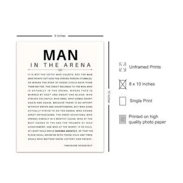 Man in the Arena Quote Poster - 8x10 Motivational Inspirational Teddy Roosevelt Daring Greatly Wall Art Decor - Unique Gift for Men, Boys, Teens, Entrepreneur - For Office, Living Room, Bedroom
