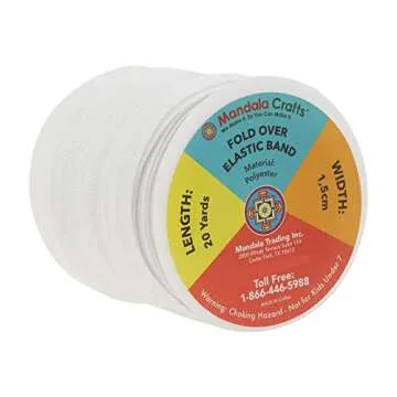 Show more Introducing the Mandala Crafts Foldover Elastic Bands, a versatile companion designed for all your crafting needs! Measuring 5/8 inches wide and available in a generous 20 yards, this soft white elastic ribbon is your go-to solution for creating stunning hair ties, headbands, baby hair bows, and so much more. Made from high-quality, latex-free spandex, this fold-over elastic is perfect for those who appreciate both functionality and comfort. Not only does it provide great stretch and durability, but it also boasts a rich color that remains vibrant even after multiple washes, ensuring your projects look fresh and appealing.