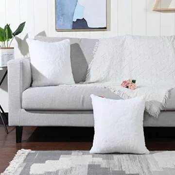 MANDIOO Pack of 2 Pure Snow White Faux Fur Fuzzy Cozy Soft Decorative Throw Pillow Covers Set Cushion Cases Pillowcases for Sofa Bedroom Car 20x20 Inches