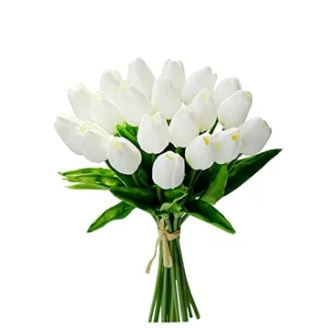 Show moreIntroducing **Mandy's 20pcs Pure White Flowers Artificial Tulip Silk Fake Flowers**, a beautifully curated collection that brings the elegance of spring into your home year-round. These **stunning tulips**, designed from premium **soft Polyurethane (PU)** with robust plastic stems, boast a height of **13.5 inches (35 cm)** and a flower head diameter of **1.5 inches (3.8 cm)**. The designers have expertly crafted these tulips to emulate the beauty of real flowers, delivering vibrant colors that symbolize a **colorful life** and evoke joy in any space.