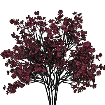 Show more Introducing Mandy's 6pcs Burgundy Artificial Baby's Breath Flowers, your go-to solution for adding a touch of elegance to any decor! Crafted with high-quality silk material, these stunning artificial flowers achieve a remarkably lifelike appearance that can enhance both indoor and outdoor settings. Standing at a full height of 18.7 inches with delicate petals measuring 0.6 inches in diameter, each bouquet radiates class and beauty while providing a versatile solution for your decorating needs. With a total of 6 groups and 16 forks per bundle, you can rearrange them effortlessly for your DIY projects.