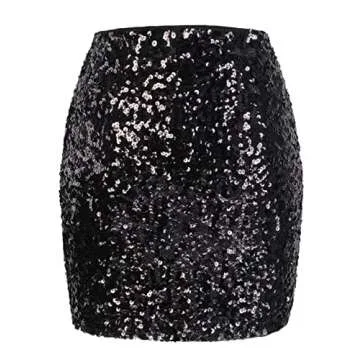 MANER Women's Sequin Skirt Sparkle Stretchy Bodycon Mini Skirts Night Out Party (M/US 8-10, Black)