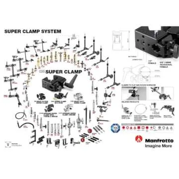The Manfrotto 035RL Super Clamp is a versatile and robust mounting solution that promises to elevate your photography and videography experience. This Italian-made super clamp is constructed with high-quality industrial materials, ensuring its durability and reliability for both professional and amateur photographers alike. With the ability to securely attach to various surfaces—be it a tabletop, pipe, or even an irregularly shaped object—this clamp adapts effortlessly to your unique...