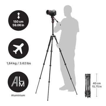 Manfrotto Befree Live 4-Section Aluminum Compact Travel Video Tripod with Fluid Head - Pan Bar - Carrying Bag - Manfrotto 6 Month Limited Warranty (Extendable to 9 Year 6 Month with Registration)