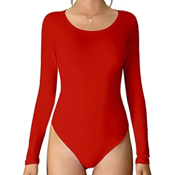 Show more Introducing the MANGDIUP Women's Crew Neck Long Sleeve Bodysuit, designed to be your go-to outfit for comfort and style! Made with high-quality stretch cotton, this bodysuit promises a snug fit that contours beautifully to your body, ensuring you feel as good as you look. Its vibrant red color adds a pop of excitement to your wardrobe, perfect for layering or wearing on its own. With long sleeves that provide extra coverage and warmth, this jumpsuit is not just a piece of clothing, but an essential part of your everyday attire.
